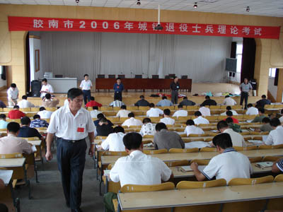 716,膠南市2006年城鎮(zhèn)退役士兵安置“雙考”理論考試在市教師進(jìn)修學(xué)校舉行。今年我市共接收138名城鎮(zhèn)退役士兵,除復(fù)工復(fù)職、自謀職業(yè)的以外,其他103名城鎮(zhèn)退役士兵全部報名參加了考試。